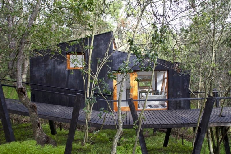 Situado en el arroyo, y elevado por pilotes es accesible a través de un puente y tiene vistas a nivel del follaje de los árboles.